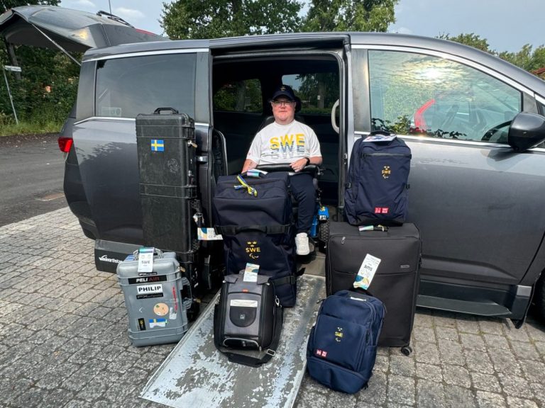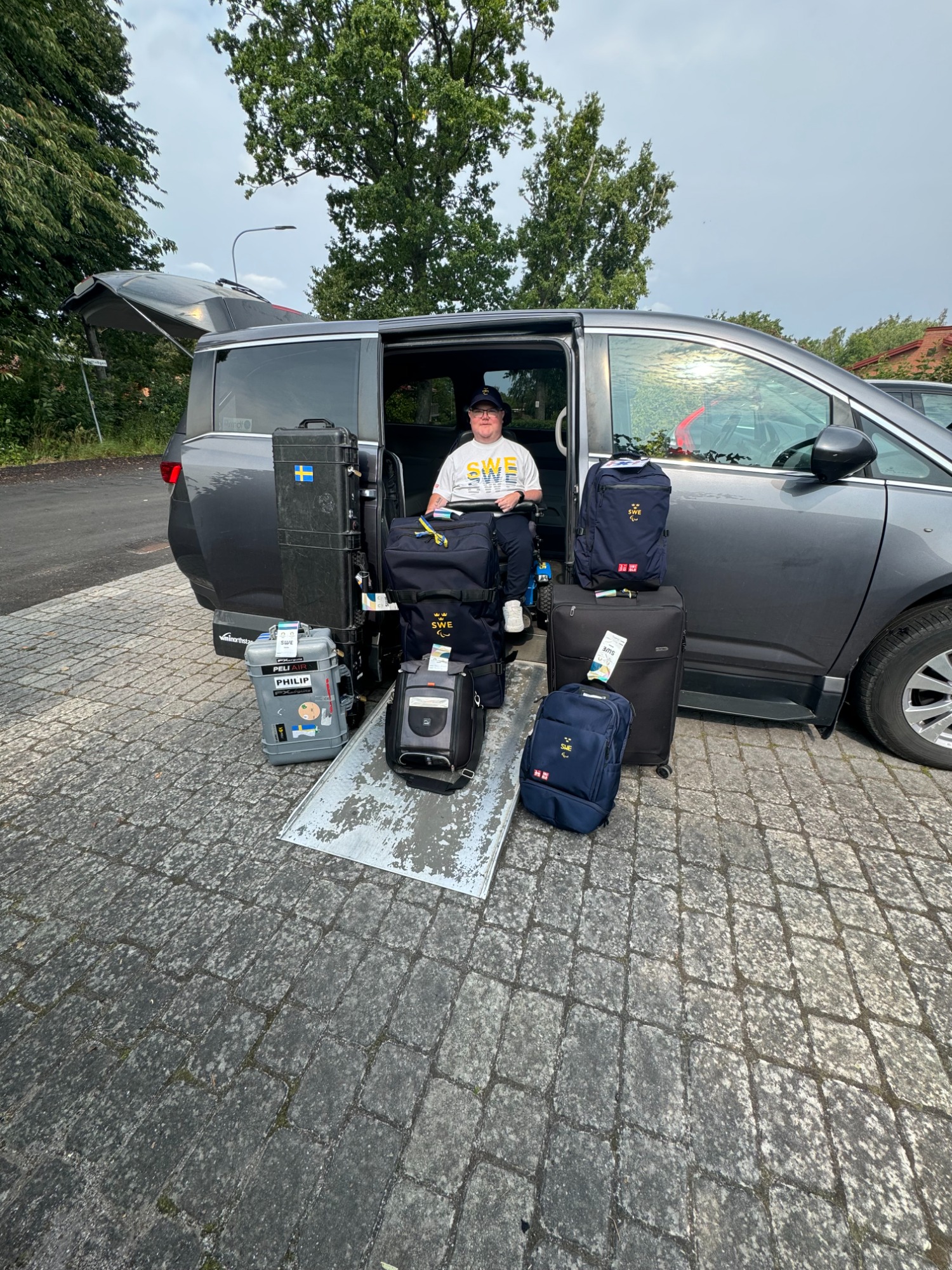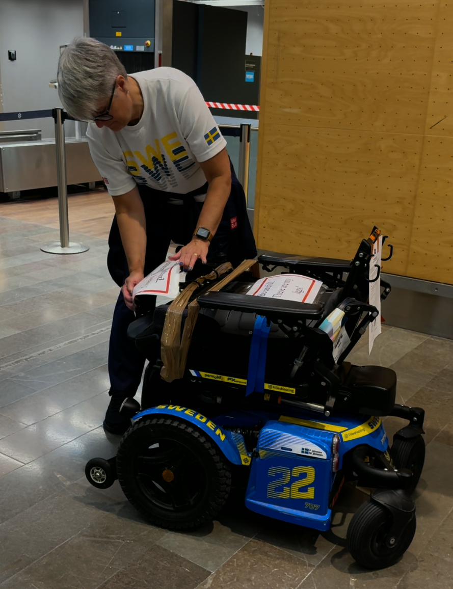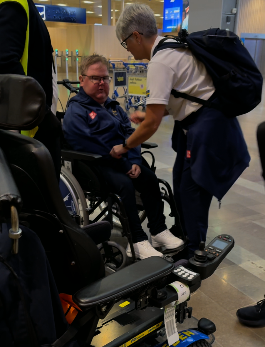 Eftersom vårt flyg gick tidigt på morgonen, sov vi på hotell på Arlanda för att inte vara allt för trötta. Flyget gick i tid och vi landade till och med tidigare än vi skulle. Vårt bagage ink vapen och Permobilen var hela och snabbt ute.