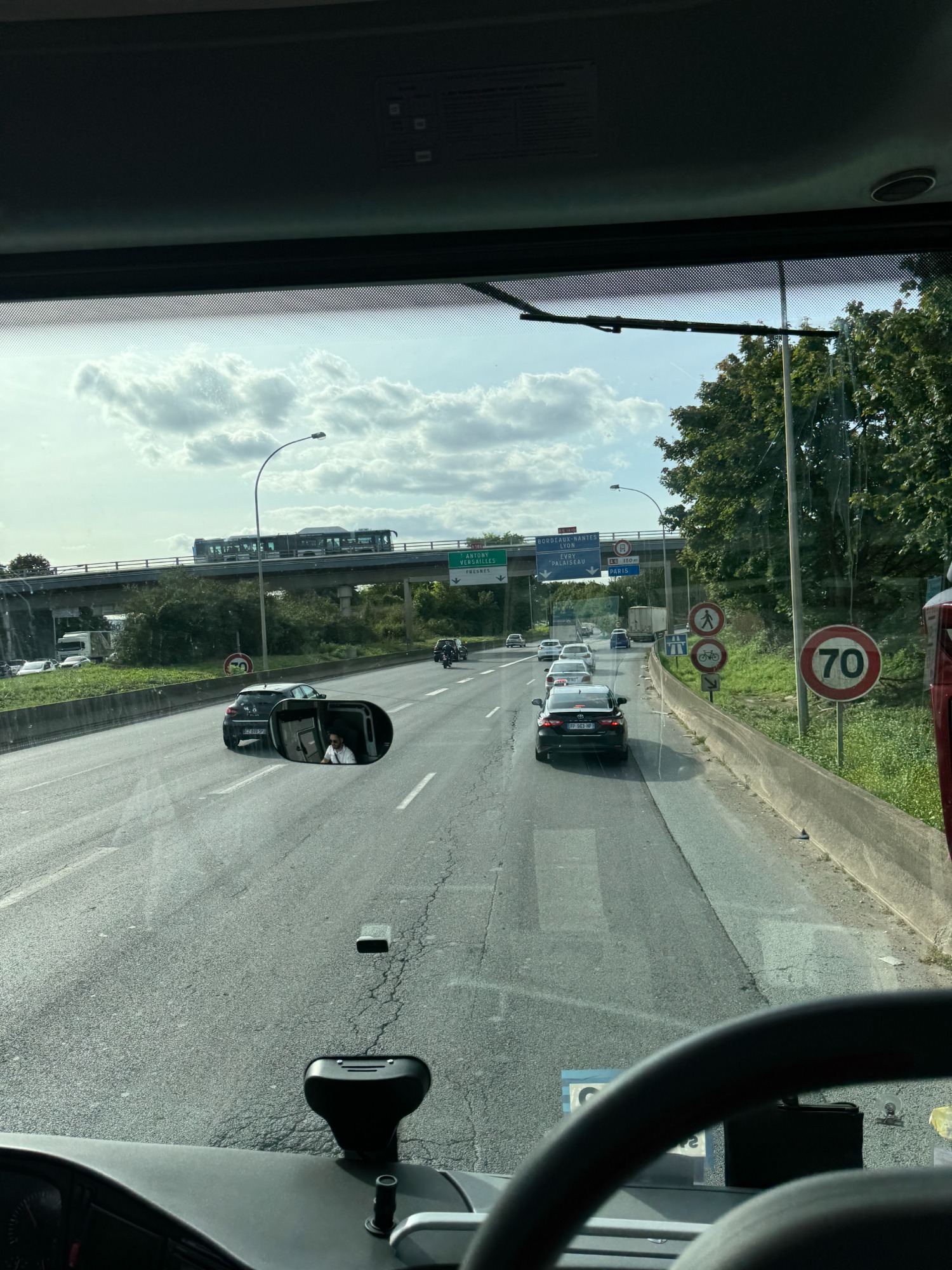 Efter ett kortare stopp åkte vi vidare till nästa flygplats där vi skulle hämta Korea. Precis innan Korea kom, passade jag på att kissa. Denna gång kissade jag inne i bussen, för jag var ”in stängd” av all packning. Jag visste att det var en lång bussresan till Chatearoux. Efter att Korea hade kommit ombord kunde vi äntligen åka vidare. Men efter 1 timmars resa var chauffören tvungen (enligt lag) att ha paus. Efter alla konstigheter och oklara förklaringar anlände vi Chatearoux byn ca 4 timmar senare än vi trodde.